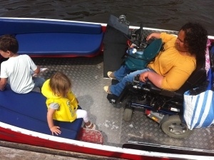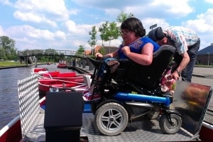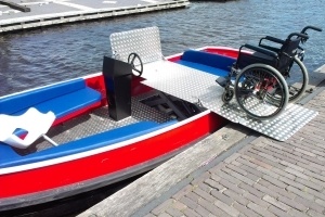 Elektrisch aangedreven sloep met console stuur, inclusief kussenset. De sloep heeft een ingebouwde rolstoellift ook te gebruiken om onderweg aan te leggen.