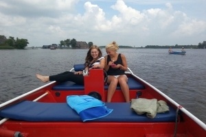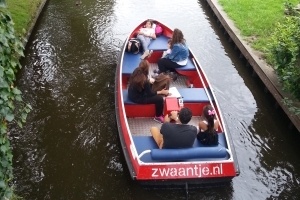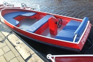 Giethoorn sloepje inclusief kussens, elektrische motor, besturing met stuurwiel. Max. 8 personen (inclusief kinderen) CE certificering tm 675 kg